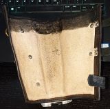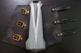 Ich hab da mal was vorbereiteeeet: Armröhren aus Leder. Erst mit Pauspapier ein Schnittmuster erstellt, dickes Leder als Basis genommen und mit dem dünnen braunen verkleidet, dass auch an Handschuhen und Gürtel ist. Gurte drannieten, Schnallen anbringen, Platten befestigen, einfetten, Dreck drauf, fertig.