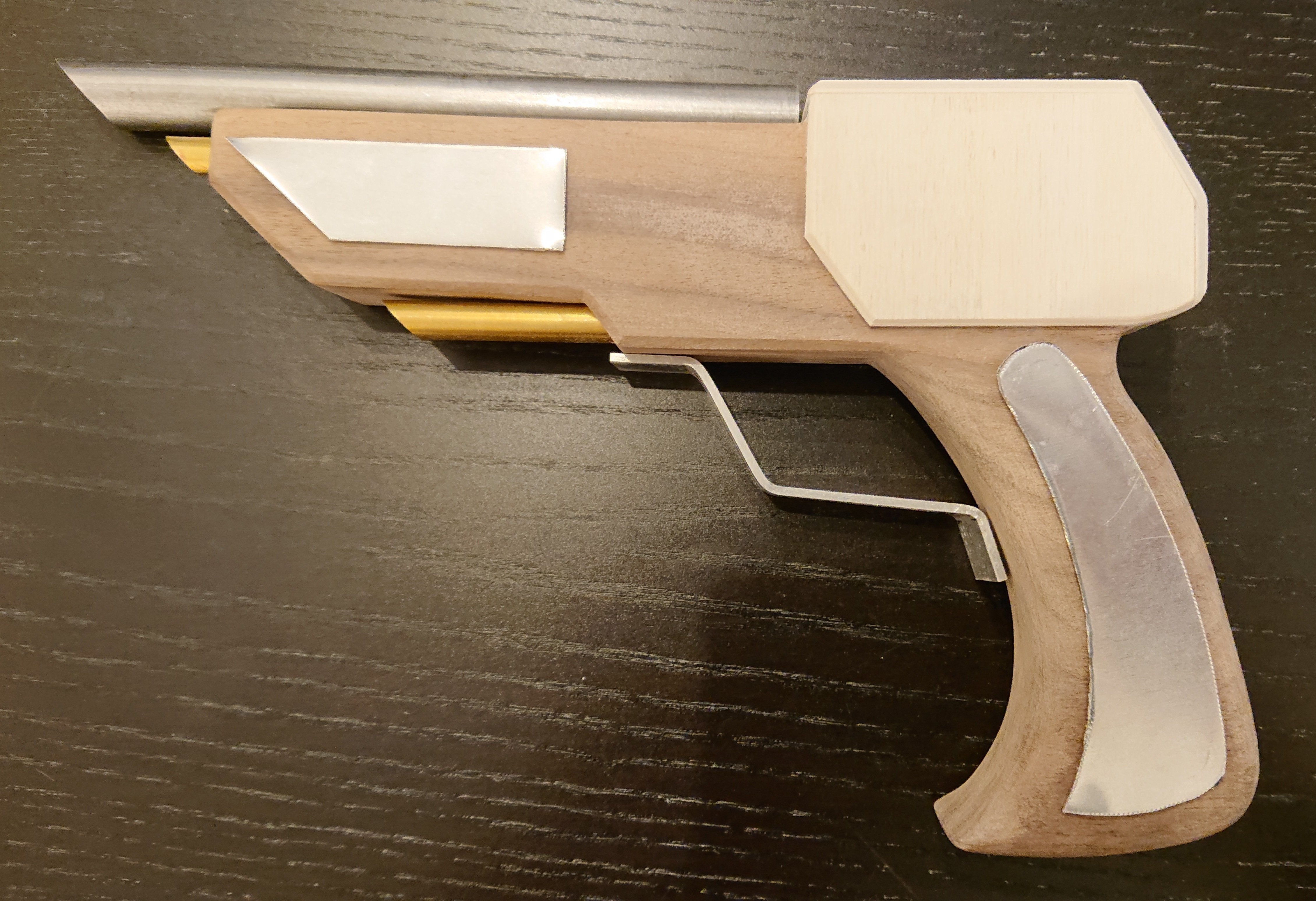 Jetzt muss ich die Aluteile und den Trigger-Guard noch vorbeteiten, die Schlitze im hinteren Bereich machen, dann geht es an Oberflächenbehandlung, Zusammenbau und Greeblies.