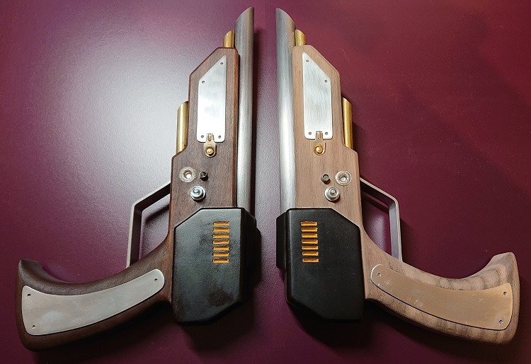 Habe versucht, deinen Tipp mit dem Blech als Abdeckung hinten umzusetzen, nach mehreren Versuchen und einem Rage-Quit wurde es dann oben mit dem Holzing, was gleichzeitig als Zielvorrichtung dient gelöst. War nicht so einfach, weil der Lauf oben doch höher ist als dieser schwarze Teil hintendran. Musste also noch was ausklinken und was anderes draufsetzen.