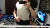 Das T-Shirt ist ein wenig länger. Daher wirkt es vllt. ein wenig unpropotional.