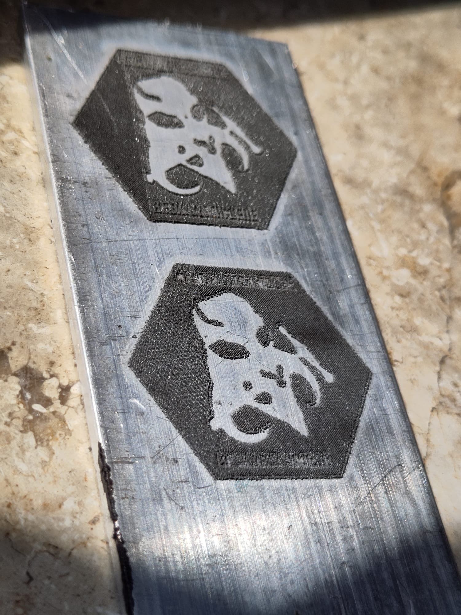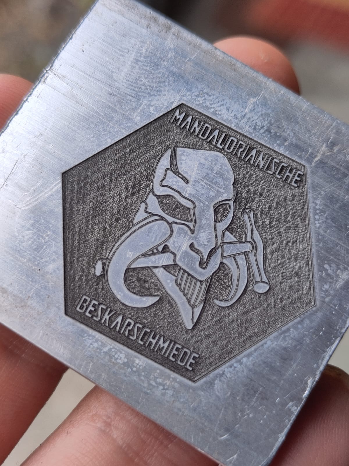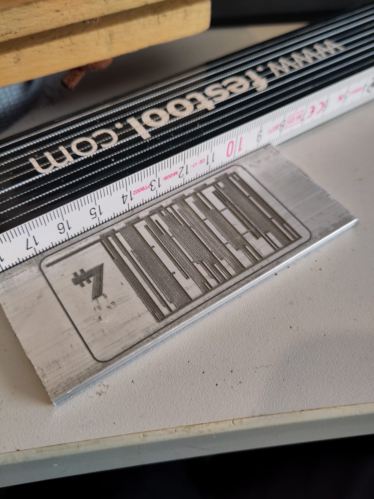 Für diese Version hab ich 3mm Vollmaterial (ca. die optische “Stärke” meiner Platten nach dem Abkanten) genommen und die "L"s wurdn ca 1-1,5mm tief eingebrannt. Um die Brandspuren zu verringern bin ich einmal mit nem schmalen Dremeltool drüber gegangen, den Rest erledigt später das Weathering.