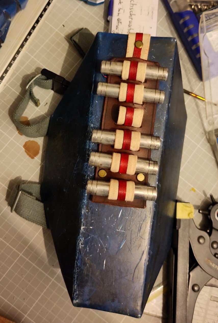 Als nächstes steht dann der Holster, ne Tasche für vorne und Aufbewahrungsmöglichkeiten für die gedrehten Zylinder und die Bactahülsen an. Zum Glück ist meine Abschlussarbeit abgegeben und ich habe aktuell viel Zeit