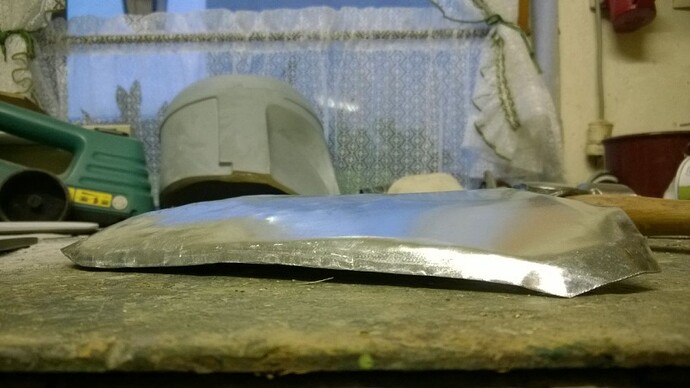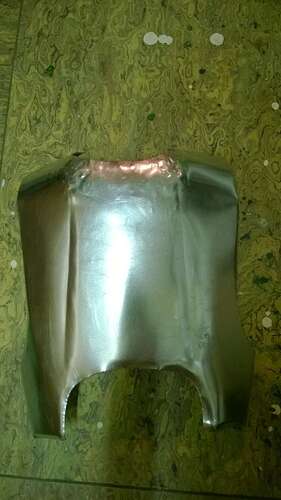 Die Rückenplatte habe ich heute auch begonnen - ein ziemlicher Kampf! Habe jetzt absichtlich bei den Schulterblättern einen Knick einfgefügt, damit es die richtige Wölbung bekommt, den muss ich jetzt morgen dann noch flach bekommen, einstweilen siehts mal so aus: