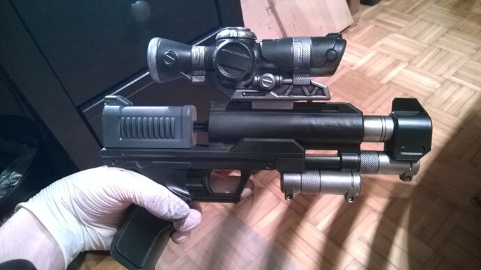 Blaster (WIP); irgendeine Verzierung kommt noch drauf, Symbol… Streifen… irgendwas