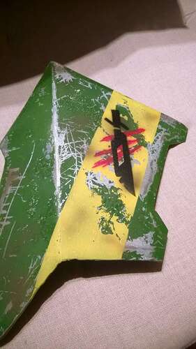 Die Rote Kralle werd ich noch ein bisschen bearbeiten, weil sie sieht so einfach zu neu aus (selbes gilt eigentlich für den ganzen Helm, der hat bis jetzt eigentlich nur die Grundfarben)