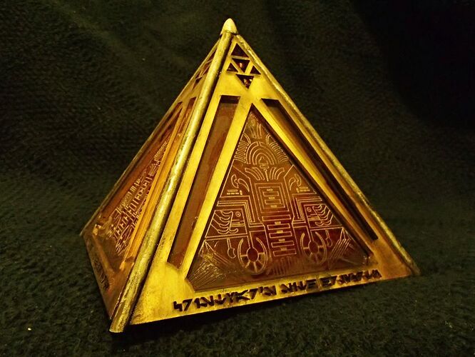 Antillas[/quote]Daran wäre ich auch interessiert. Ich probier da schon ewig sowas selber zu erstellen, damit ich es mal durch den Laser jagen kann. Die Pyramide selber hab ich mir schon mal selber gezeichnet. Ich hatte mal kurzen Kontakt zu dem Modellbauer der für die EPII Encyclopedia das original Model der Pyramide gebaut hat und will das Teil seitdem nachbaun. Einmal in canon grösse und eben einmal als ca 30cm hohes Nodell wie es eben für das Buch fotografier wurde^^