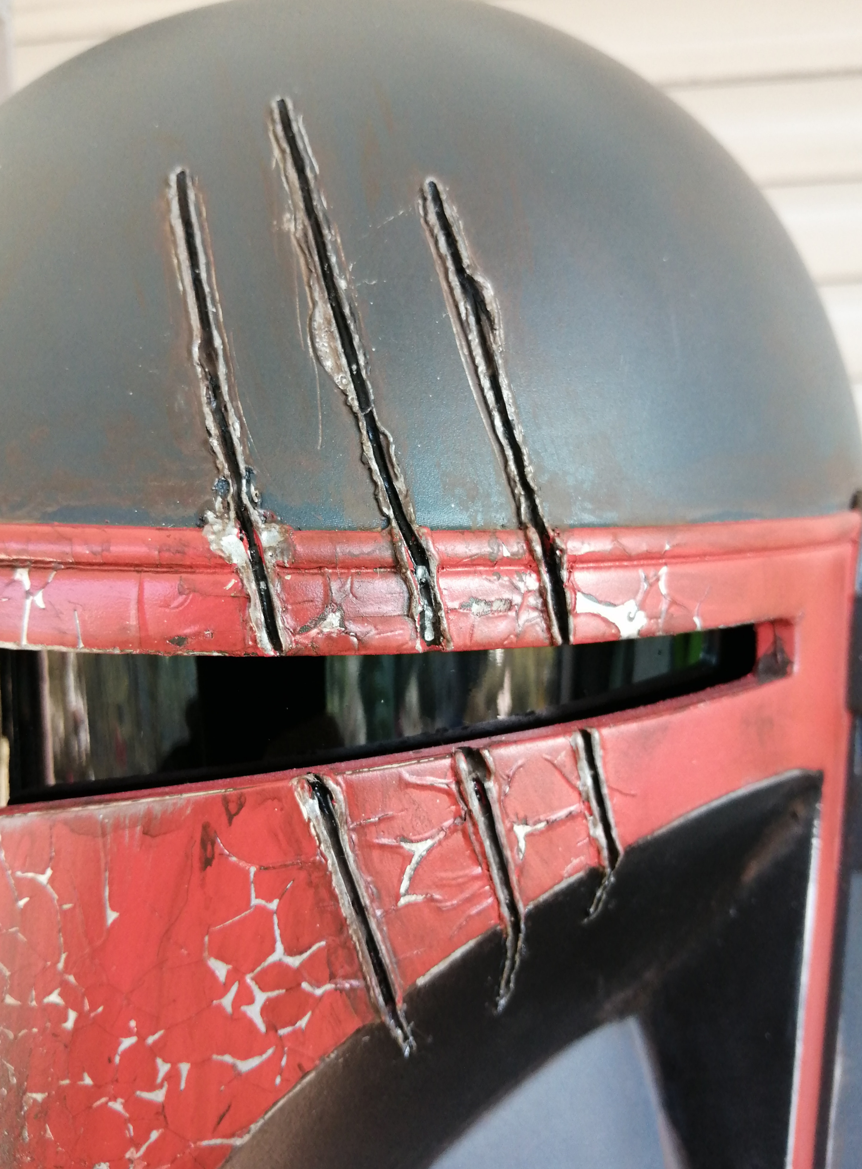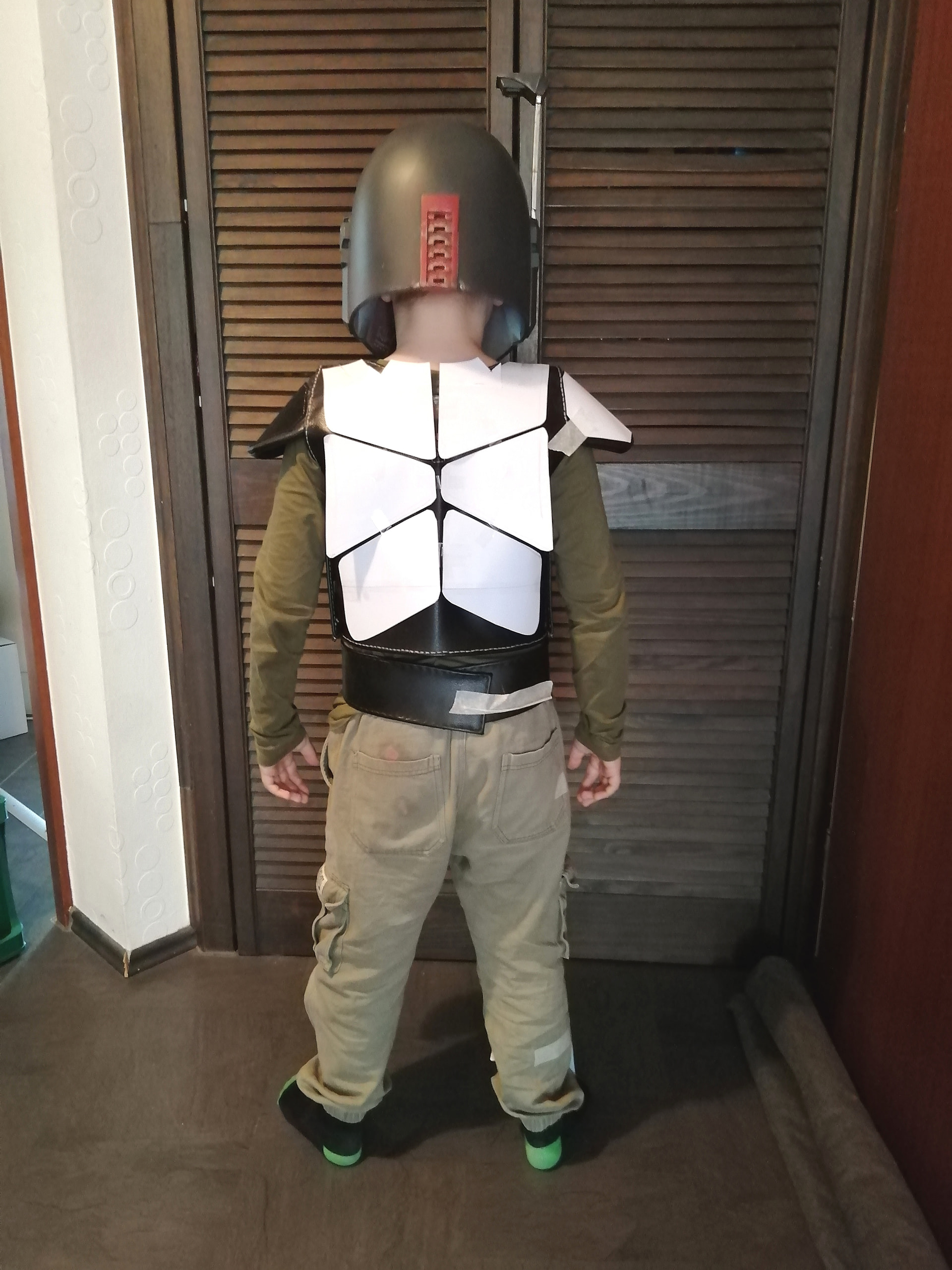 Allgemein kucke ich das ihm anfangs Weste und Platten etwas zu (nicht übertrieben) groß sind, damit er ein wenig in die Gam reinwachsen kann. Dies betrifft besonders die Weste. Bei den (Brust)Platten arbeite ich etwas mit den Abständen. Anfangs enger, später weiter auseinander. Der Helm ist ihm auch noch ein wenig zu gross, aber wer weiss wie das in einem halben Jahr aussieht. ![]()