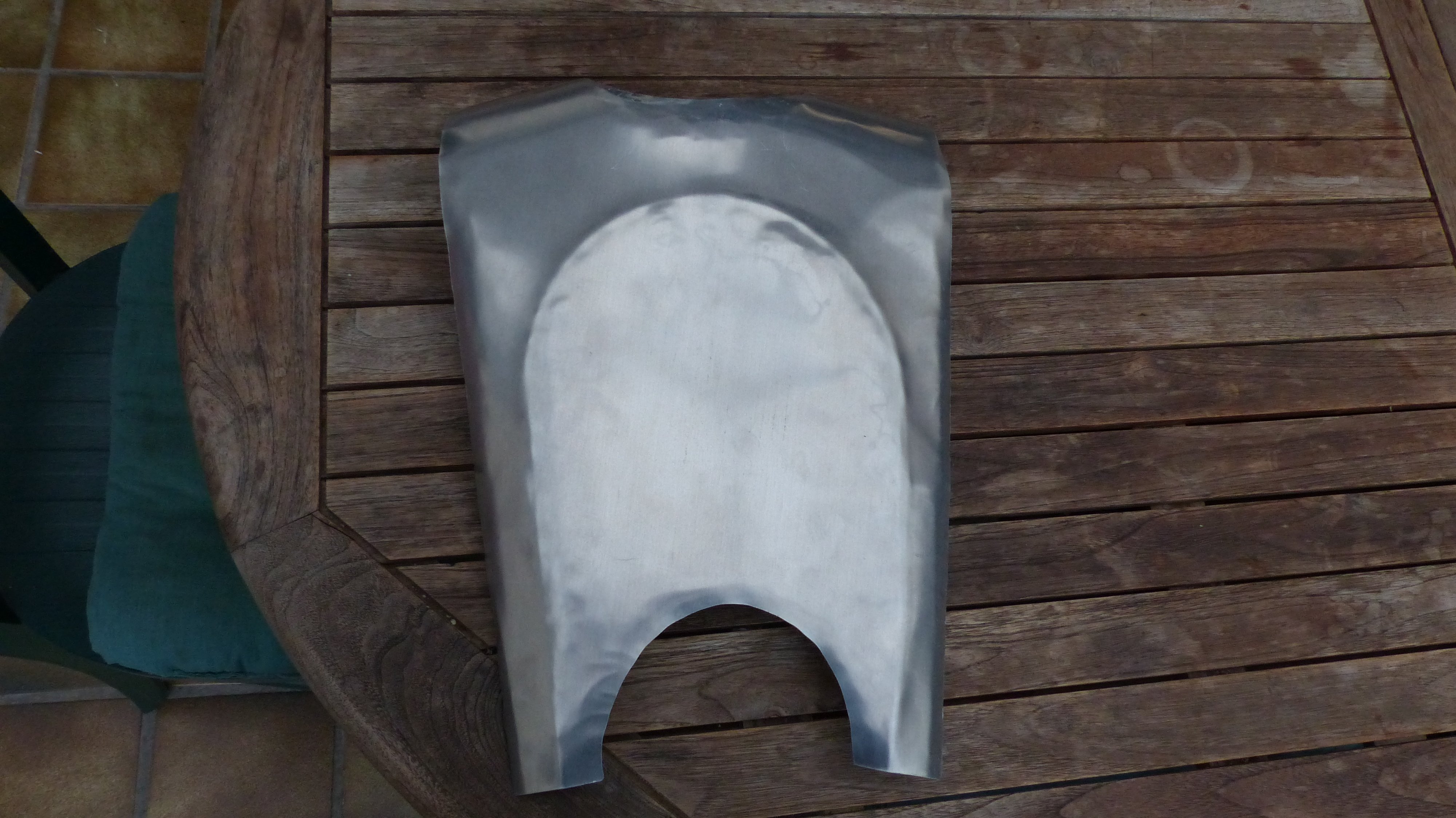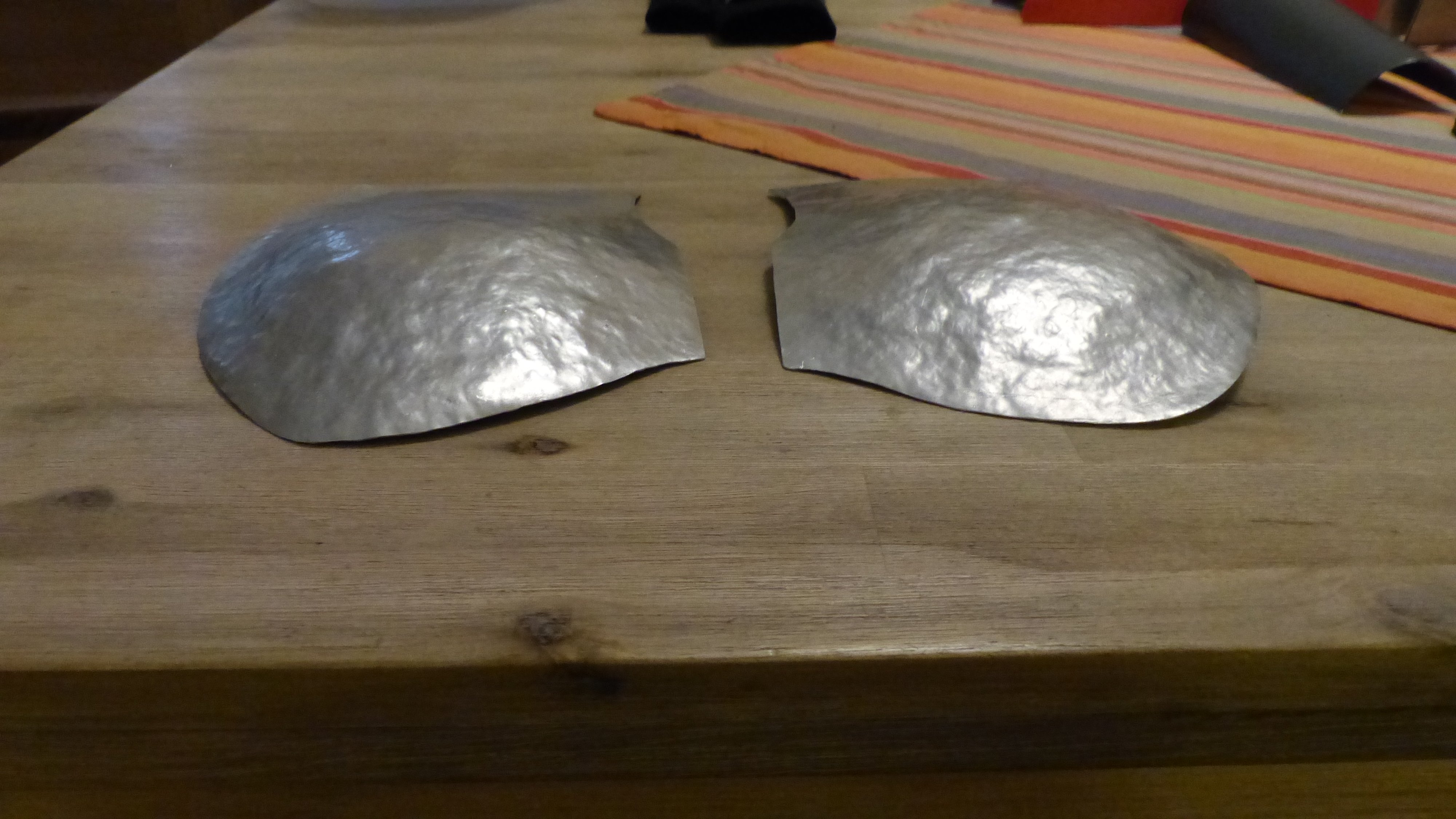 Dank Sheva sind meine Brustplatten und meine Knie nun fertig getrieben, die werden dann natürlich noch geglättet.