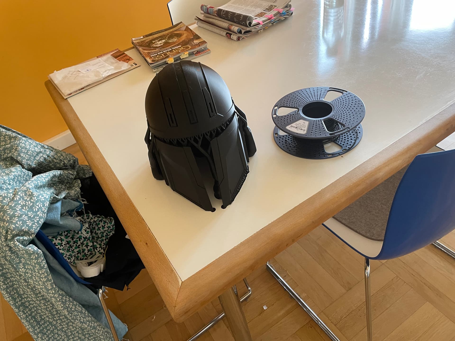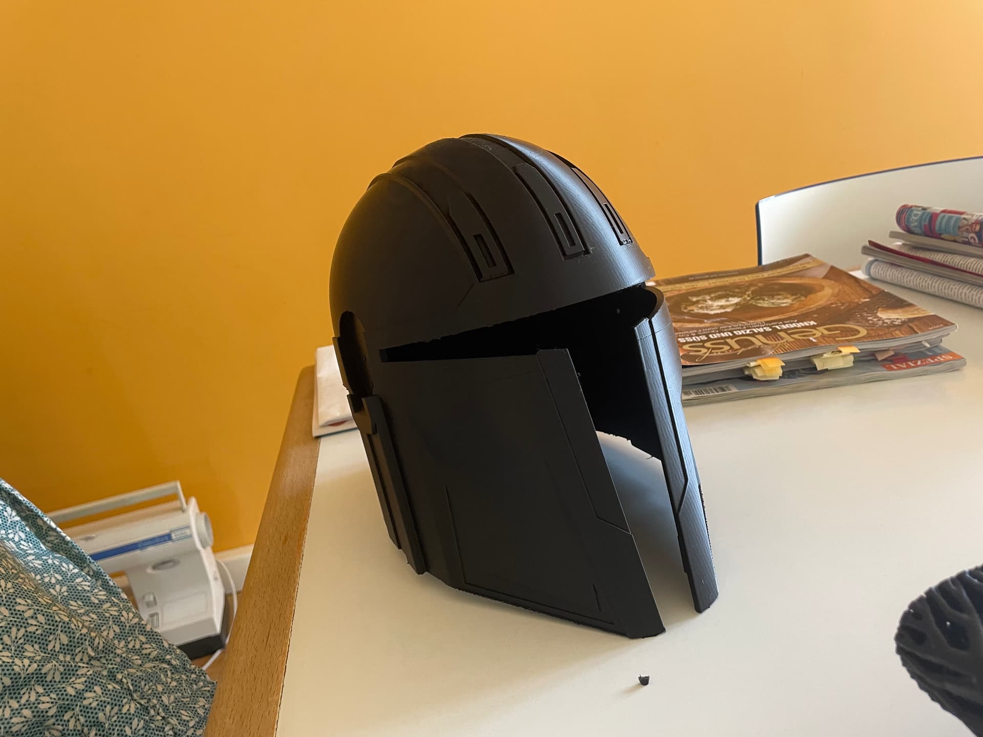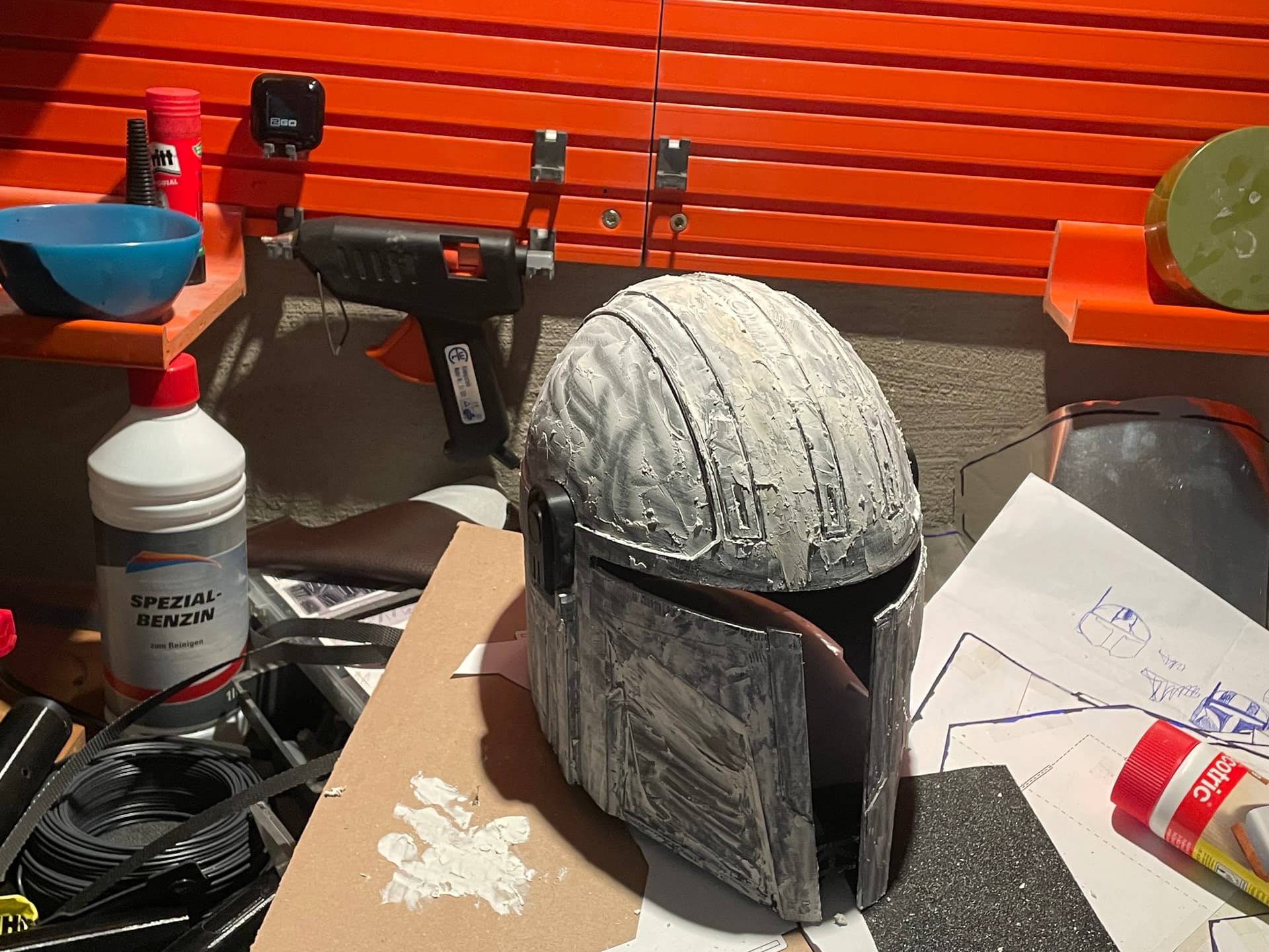 Ich muss sagen gedruckt gefällt mir der Helm sehr gut, hab den ja schon in der digitalen Version gesehen, als heißt es ab jetzt, viel Schleifen, Anprobe rein und weiter gehts !