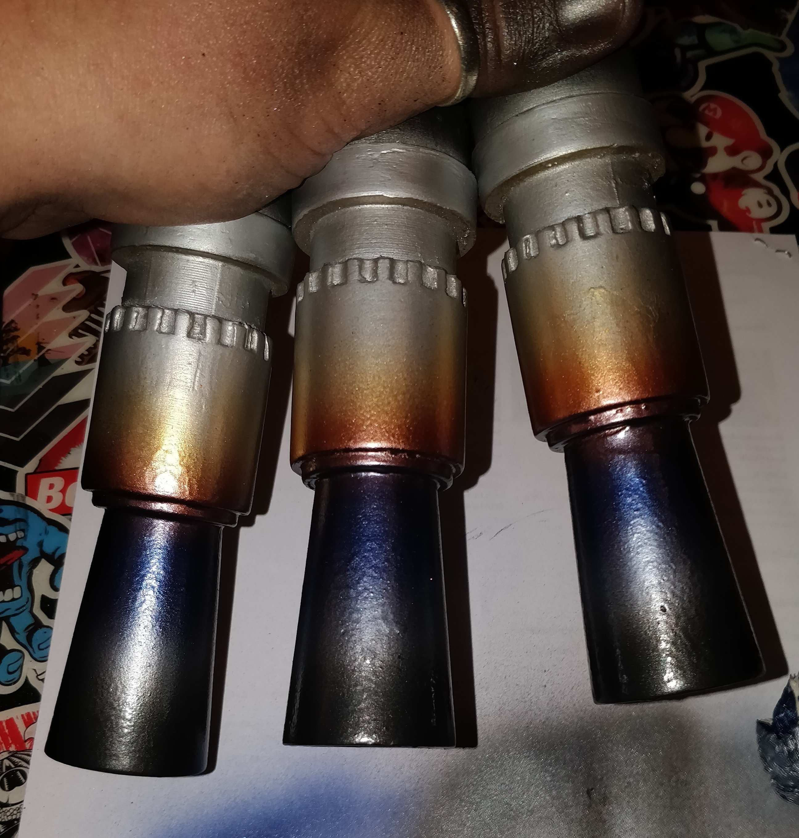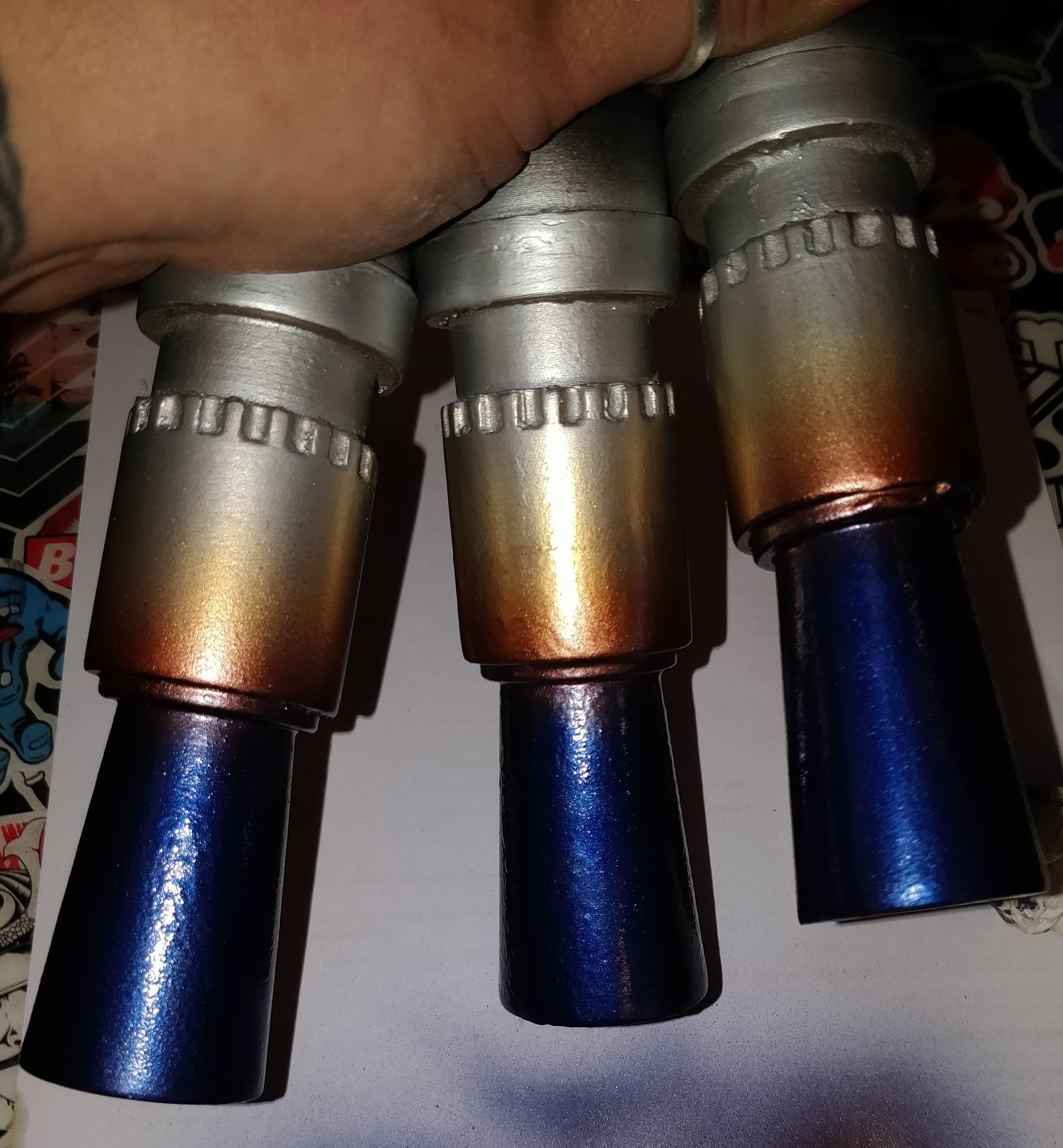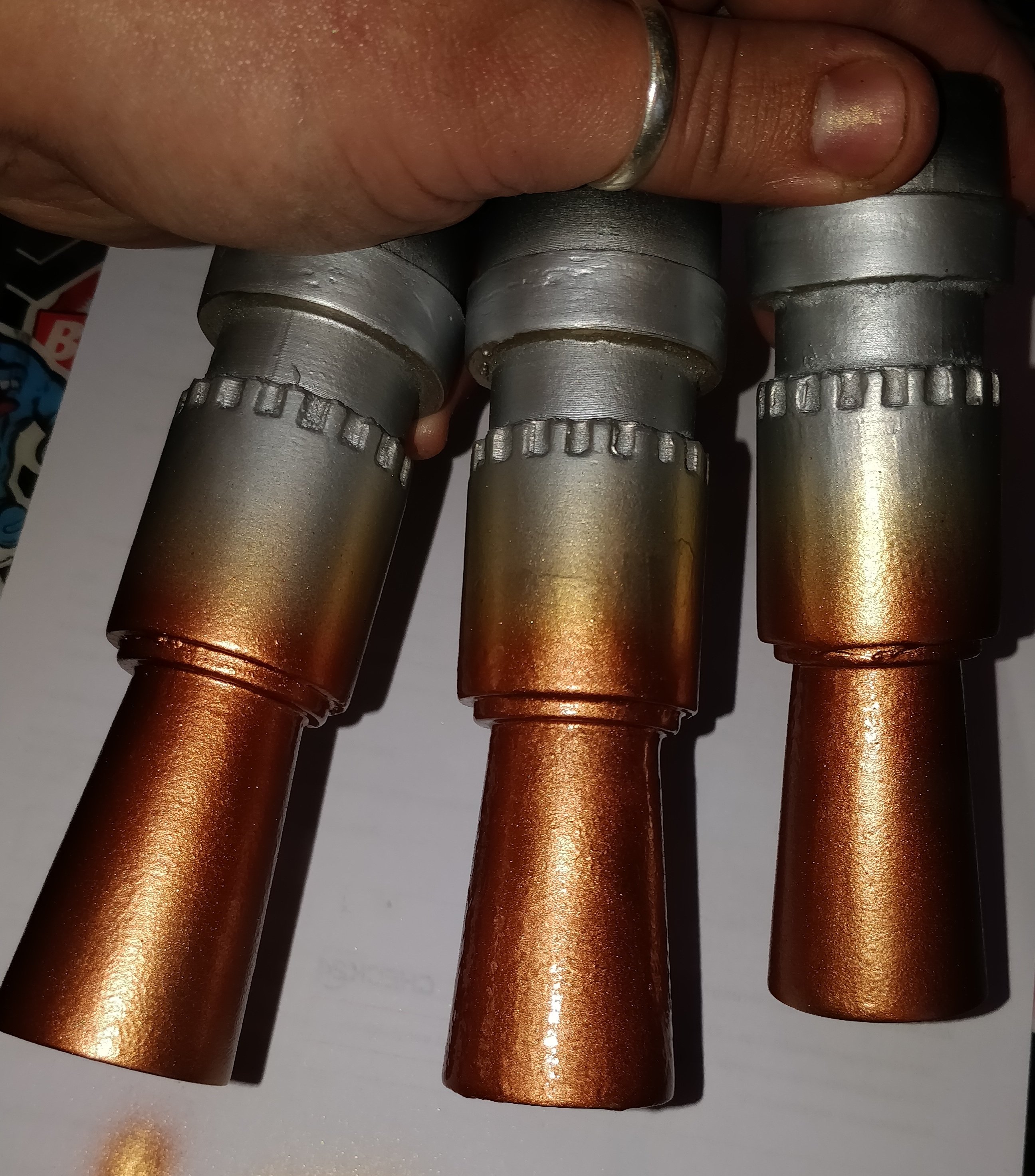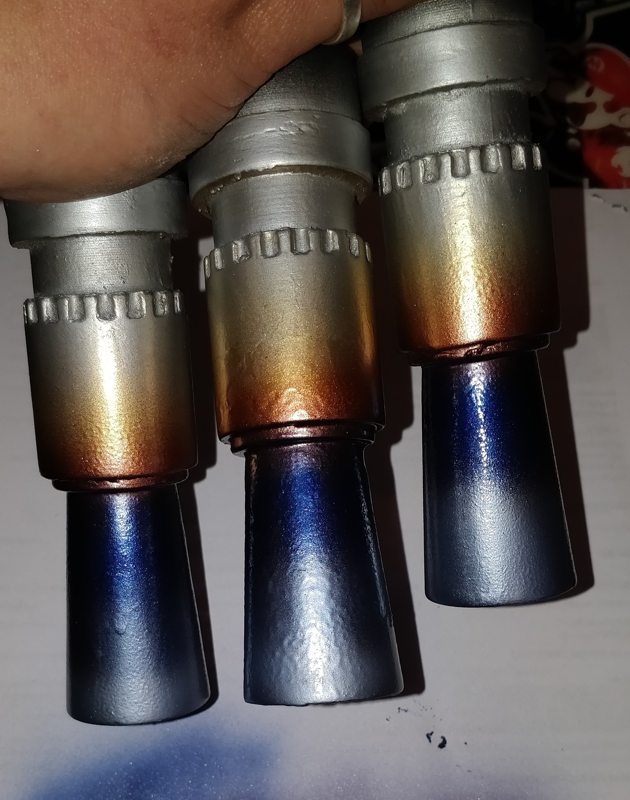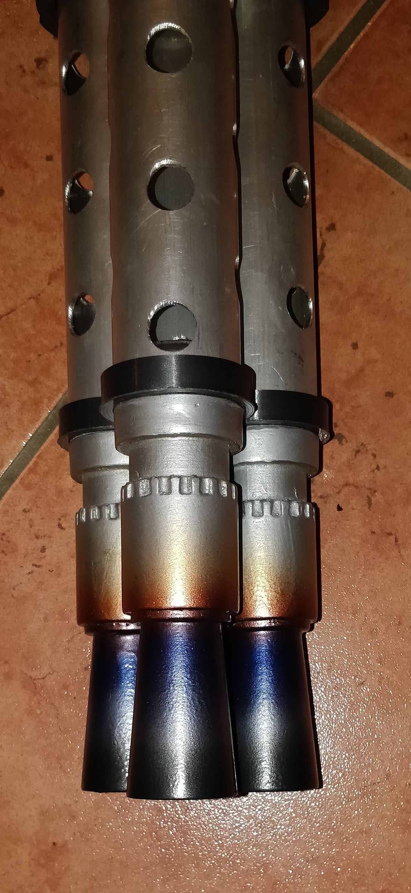 Die ersten drei Farben an den Mündungen sind drauf um eine Hitzeverfärbung darzustellen, fehlen noch 4 weitere.