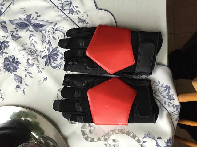 Wenn du die finger frei lassen willst, solltest du mal hei tomoe nachschauen wie sie das für ihr jedi outfit gelöst hat. Leder armschützer mit metallplatte drauf und erweiterung uber den handrucken mit kleiner schlaufe um den mittelfinger. Sieht weseitlich gescheiter aus, als diese Mechaniker handschuhe. Und du kannst sie aus dem selben Leder fertigen wie den Gürtel!