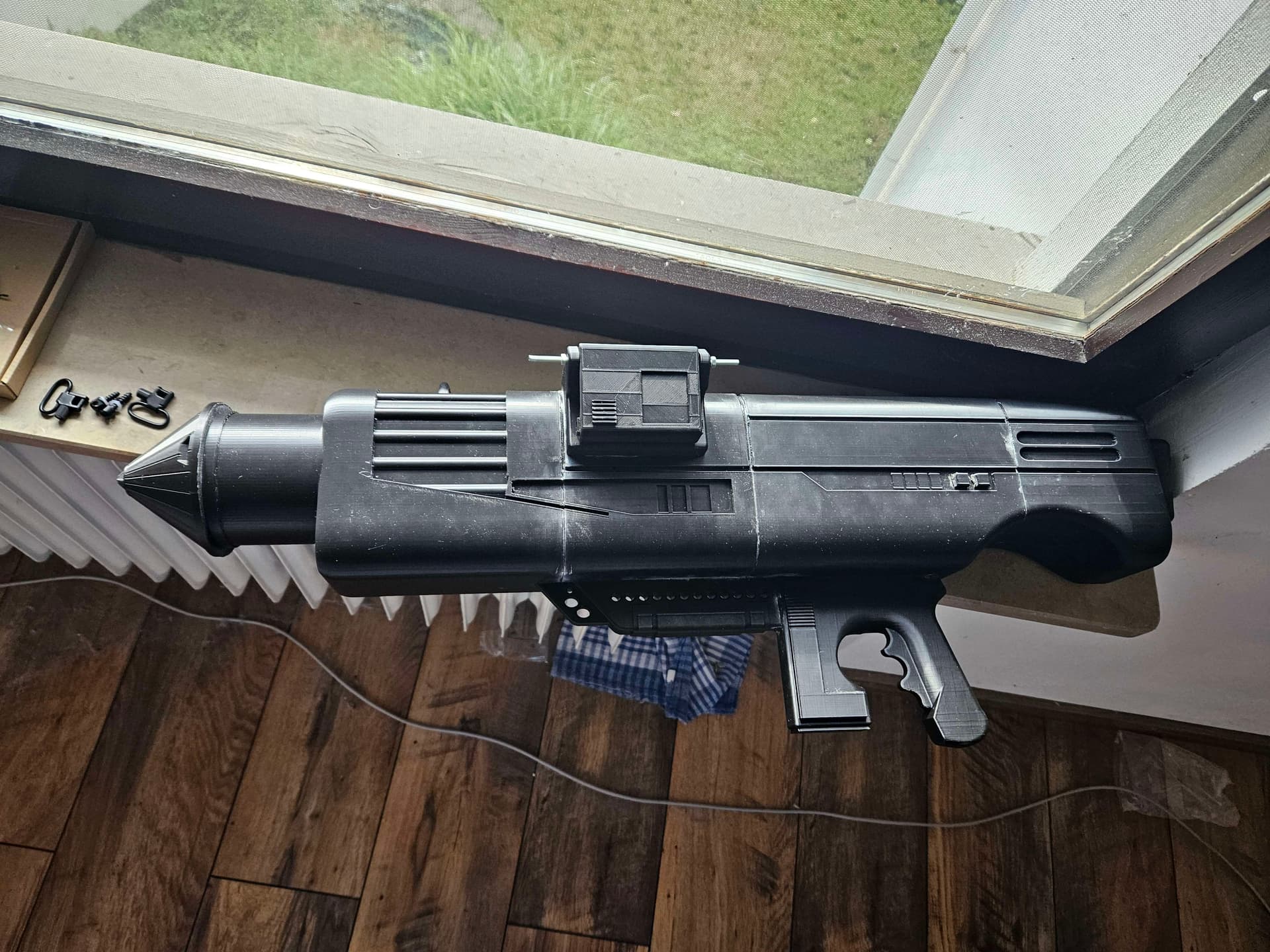 Hose wurde eine Invader Gear Predator Combat Hose weil diese an den Beinen diese Falten hat die ein bischen der Original Hose gleichen. Als Untershirt hab ich ein schwarzes Muscleshirt mit MI Logo sollte es Armlos in die Schlacht gehen. Wenn es denn mit der Combat Jacke los geht kommt ein Shirt der Roughnecks drunter und die Armor drauf. Die Jacke kam aus den USA von New American Jackets und passt richtig gut zur Armor und der vorhandenen Hose. Die typischen Movie Abzeichen sind als Aufnäher vorhanden und auch die Klappen für die Rangabzeichen. Weiteres Zubehör kam aus den USA beim Tragen der Armor haben manche den Schutzkragen an, das ist ein Neoprenkragen, den man heute auch nur noch schwer bekommen kann. Zum Glück gabs auf Ebay Katarra8, die diese Kragen nach Filmvorlagen korrekt anfertigt, gleich einen geordert der angekommen ist. Handschuhe sind auch so ein Problem weil die benutzten Handschuhe waren Football Lineman Handschuhe die wenn überhaupt nur noch sehr schwer zu bekommen sind. Abhilfe schaffen Handschuhe aus dem Reitsport (hier weiss ich die Marke nicht mehr) die zum Glück nur mit Lederfarbe schwarz behandelt werden müssen damit sie an die Movie Handschuhe rankommen. Denke die schauen ganz gut aus. Im Bereich Schuhwerk wirds ganz problematisch. Für den Film wurden ADIDAS Hiking Boots proiduziert und aufgekauft um diese dann noch mit Neopren und Schnallen in die Boots die die Trooper tragen um zu wandeln. Diese sind gar nicht mehr zu bekommen. Eine Alternative stellen aber die ADIDAS GSG9.2 oder 2024 Boots da, die heute auch noch zu bekommen sind. Habe ich mir dann auch noch besorgt. Noch ein Barett in schwarz oder rot und wir haben die Softparts erstmal zusammen. Jetzt dann die Details, als Einfachstes die Rigs, das Beinrig ist dabei das Schwerste weril dieses auch für den Film zusammengestellt wurde. Es wurden MP5 Magazin Taschen 2 Stück und eine Custom Wurfmessertasche zusammengefügt und für Beinaufnahme vorbereitet welches an einem Molle Mount befestigt wurde. Leider muss man sich sowas auch selbst zusammenbauen. Deswegen hab ich mir ein 3er MP5 Mag Pouch mit Molle Mount besorgt was die gleichen Schnallen wie das Original hat und hab es um einen Messermount ergänzt. Hier gibt es leider nichts vergleichbares weswegen ich einen Normalen mit Befestigung genommen habe der aber auch gut zum System passt und in dem mein 3d gedruckter Dummy gut reinpasst. Die anderen Pouches gibt es noch und die wurden nach und nach besorgt. Aber irgendwas fehlt doch da noch…ach ja Helmchen…der wurde von einem Stunthelm übernommen. Sieht man innen das Fieberglas ist da noch etwas gröber und verspachtelt allerdings hat er den SChaumstoff eingefügt das man den Helm tragen kann. Es war allerdings kein Mic dabei, dieses musste ich erst ausdrucken und einbauen. Jetzt ist aber der Helm mit Befestigung soweit tragbar. Einen Abstrich muss ich allerdings machen, eine Morita wird ein längeres Projekt weil die richtig viele Ausdrucke benötigt und Details die ich erst Stück für Stück ausdrucken muss, das wird sich hinziehen. Aber was funktionierendes habe ich dann rumliegen gehabt eine NERF Longshot…und dank der Führung des Clubs der Starship Troopers German Division habe ich ein Morita Tip bekommen (die Mündung) die ich auf die Longshot schrauben konnte damit die Nerf wenigstens nach Custom Morita aussieht. Habe dann noch den Entschluss gefasst mir das Zielfernrohr des Characters Sugar Watkins aus zu drucken welches ich auf die Nerf Morita befestigte um den Look seines Gewehrs zu simulieren. Hier wird später maL das Projekt funktionierendes Zielfernrohr gestartet davon aber in einem eigenen Thema. So was könnte man noch gebrauchen ? Ja richtig Sugar hatte ein Detail was man so nicht unbedingt gesehen hat was aber ganz kurz auftaucht…und zwar sein GPS Tracker…derr durch einen Tauchcomputer aka Uhr am Handgelenk dargestellt wurde…und mit Suchen und Eingabe im Netz konnte ich sogar das gleiche Teil bei Ebay Kleinanzeigen finden und besorgen ! Wenn das nix ist…Aber da fehlt immer noch was…Buglöcher schliessen…großer Badabumm…meine Ausrüstung braucht noch den Nuke MK55 Tacticak Nuke Launcher…gesagt getan…3d Druckprojekt…erfolgreich bestanden…nur noch die Schrauben müssen gekürzzt werden und Magnete damit das Visir im offenen Zustand auch hält und er braucht nen Anstrich dann ist da auch alles erledigt. Ich bin mal echt gespannt wie alles dann so zusammen passt. Komplette Bilder muss ich erst noch warten bis ich Zugriff auf Fotofee hab die die Bilder auch knippst aber die Bestandteile gibts schonmal hier im Thema.