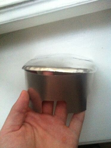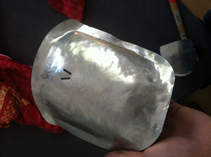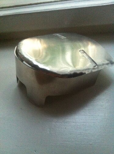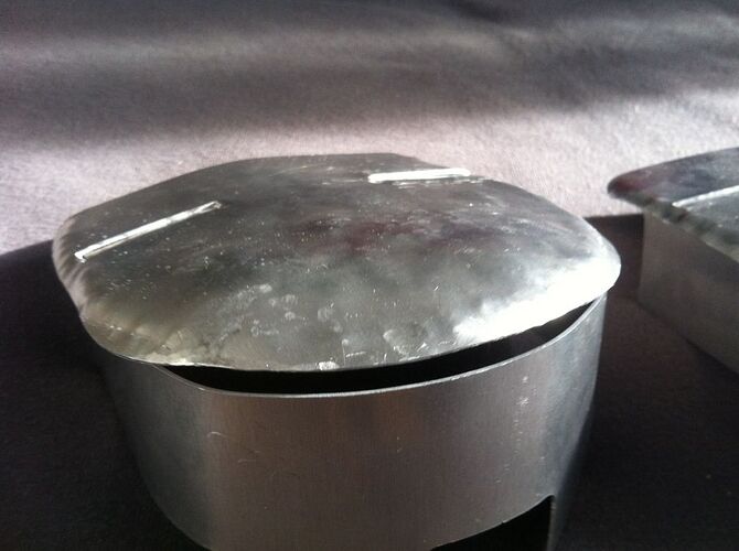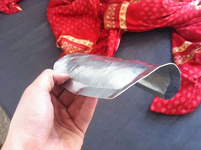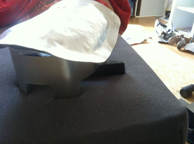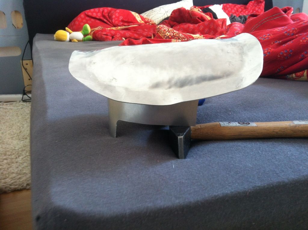 Also ich habs versucht, so weit wie möglich zu machen. Ich bin da leider (noch?) nicht so begabt, dass ich das Material “dünner und weiter” bekomme, sprich treiben. Sprich: wenn ich da noch mehr von der Basis umbiege, wird die Platte an sich kürzer. Dadurch wird der Spalt zwar in der Höhe geringer, wird dann aber in der breite weiter.