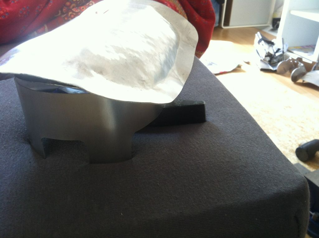 Das mit dem Schlitz an der Schulter hatte ich auch. Hab mit nem treibhammer die Schulter etwas ausgebeult UND mit ner Zange den Rand von der oberplatte um 5mm kerzengerade nach unten geknickt. - Allerdings hab ich dafür die untere Spannplatte durch den schlitz nach hinten versetzt. Beide teile durch den Schlitz fest verbunden und mhermals mit dem Hamemr auf beide teile gleichzetig geschlagen. Dann von Innen Silikon aufgetragen zum kleben, und auf der Außenseite Aluspachtel um den Überstand flüssiger erscheinen zu lassen ^^