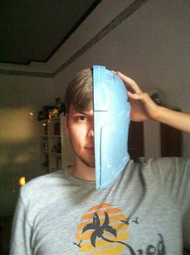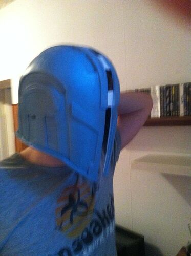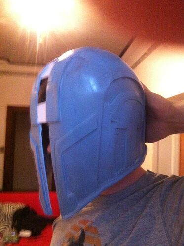 Ist also wirklich, wie Jaro gesagt hat: der Helm verjüngt sich nach unten. Auch, wo unten die Gussreste entfernt sind, passt die Unterkante einfach nicht über die Ohren^^ Und eine gewisse Polsterung muss ja auch noch rein. Also um die erwähnten ca. 3cm verbreitern und dann noch mal anprobieren. Evtl. muss ich ihn dann auch gar nicht mehr in der Länge strecken.