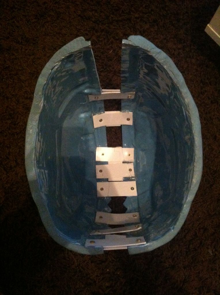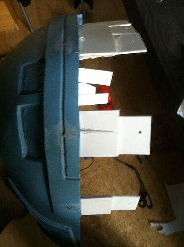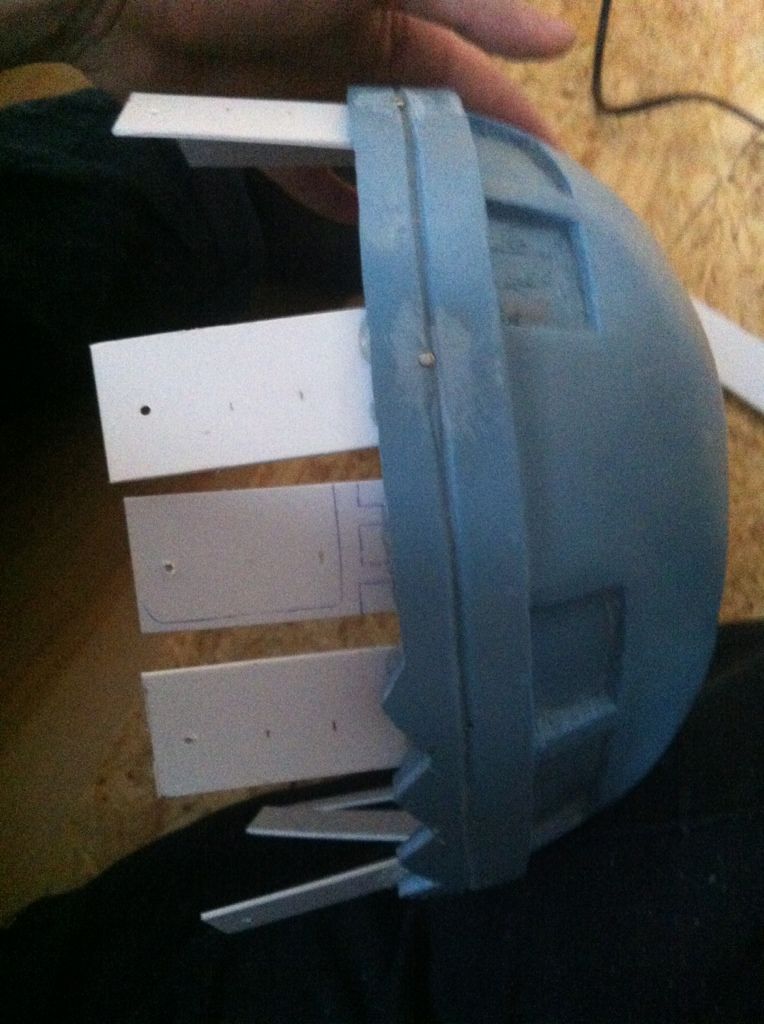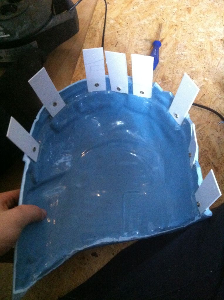 Ich habe mit ein paar Plastikstreifen zurechtschnitten und mit ein wenig Abstand mit Heißkleber in eine Helmhälfte geklebt. Anschließend habe ich die Streifen mit kleinen Schrauben fixiert. Das hält sowas von bombenfest ^^ Ich war selbst etwas erstaunt.