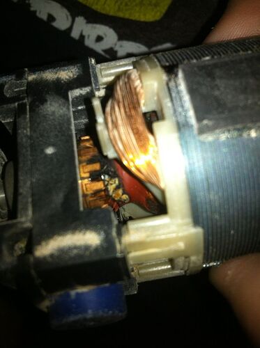 Beim Dremeln am Helm lief der Dremel auf ein mal nicht mehr so rund und wurde auch langsamer. habe trotzdem weiter gemacht… bis auf ein mal ein paar Funken geschlagen sind Oo