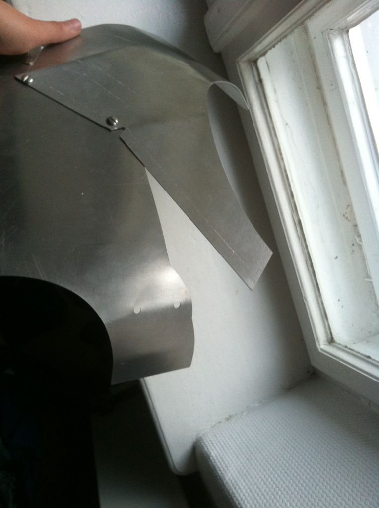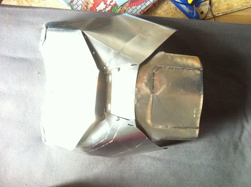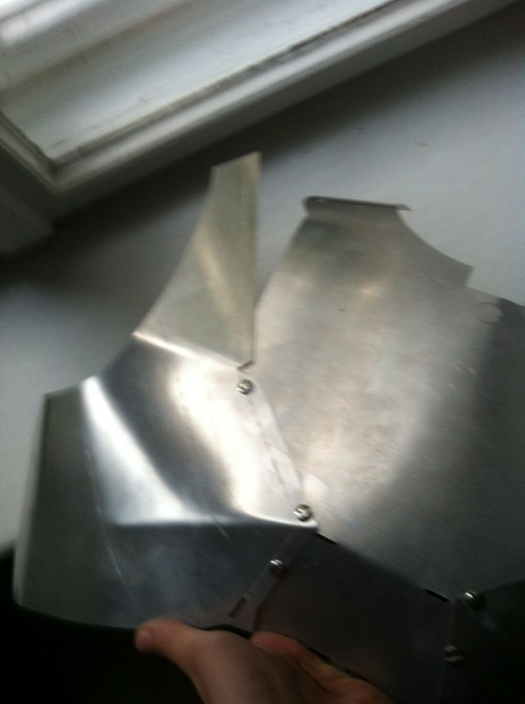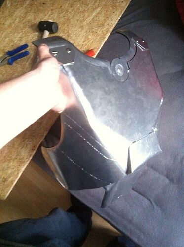 Dann das Bauchteil gebogen, die Stufe reingehämmert und wieder etwas gebogen - so angepasst, dass es noch unter den Brustpanzer passt.