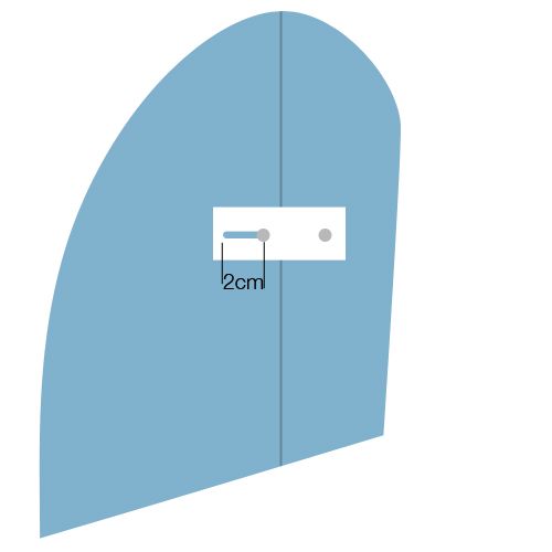 Und hier eine Skizze, wie ich mir das vorstelle. Um dieses mal zu verhindern, dass sich der Helm in der Höhe verschiebt usw., will ich die Schrauben an beiden Seiten schon anbringen, bevor ich den Helm vollständig “öffne”. In dem weißen Plättchen mache ich einen genau 2cm langen Schnitt. Innerhalb dieses Schnittes kann sich die Schraube bewegen, also auch die voredere Helmhälfte. Wenn der Abstand stimmt, setze ich eine weitere Schraube in die “bewegliche Hälfte”, um weitere Bewegung zu verhindern. Anschließend kann ich noch ein paar “normale” Plastikstückchen anschrauben, wie auch bei dem Schnitt, den ich bei der Breitenvergrößerung gemacht habe.