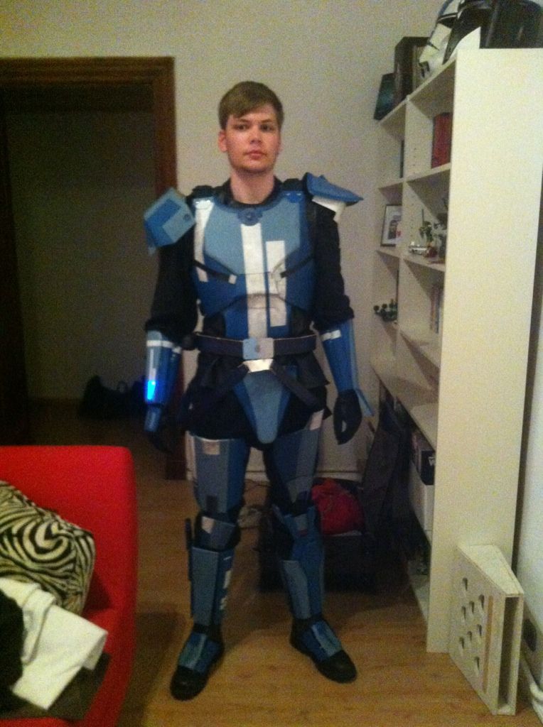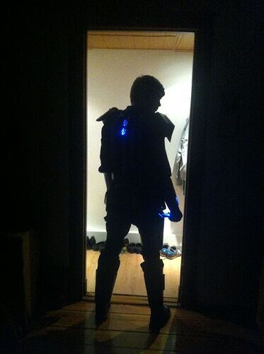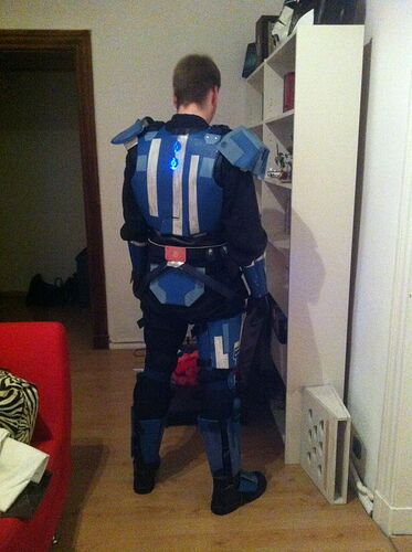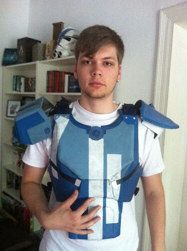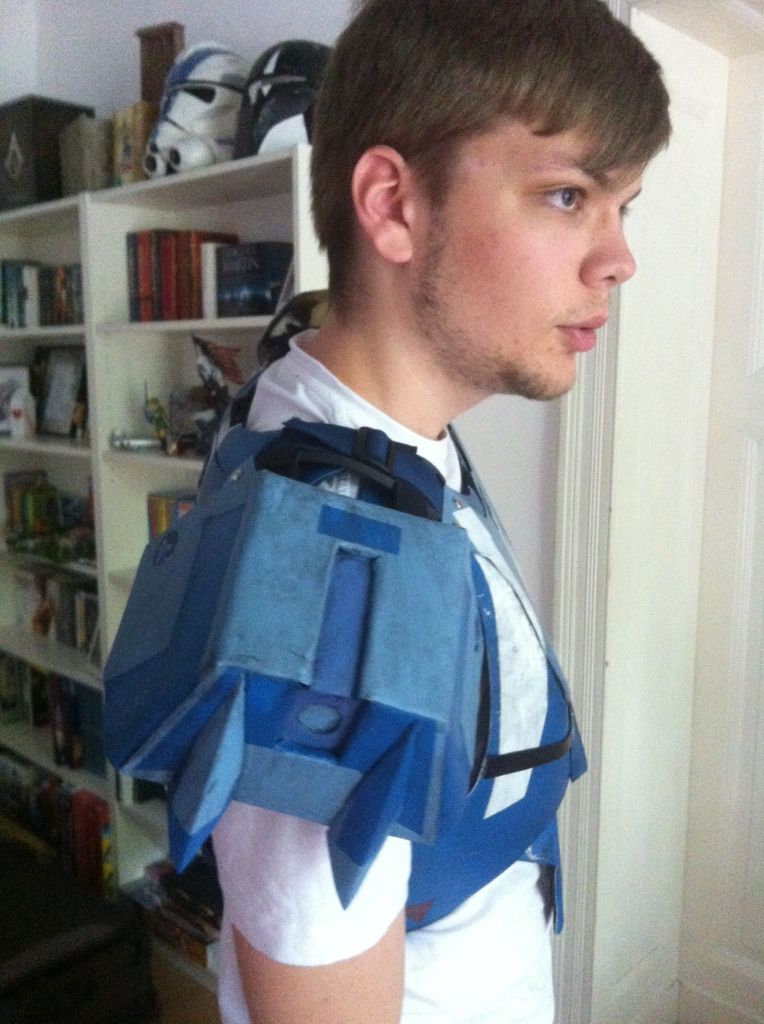 So, die Schultern sind auch dran. Einfache Klettbandkonstruktion (neuer Lieblingsbaustoff :whistling: ), ist im Abstand zum Kopf voll variabel (etwa 5cm zu beiden Seiten Spielraum an allen Riemen)